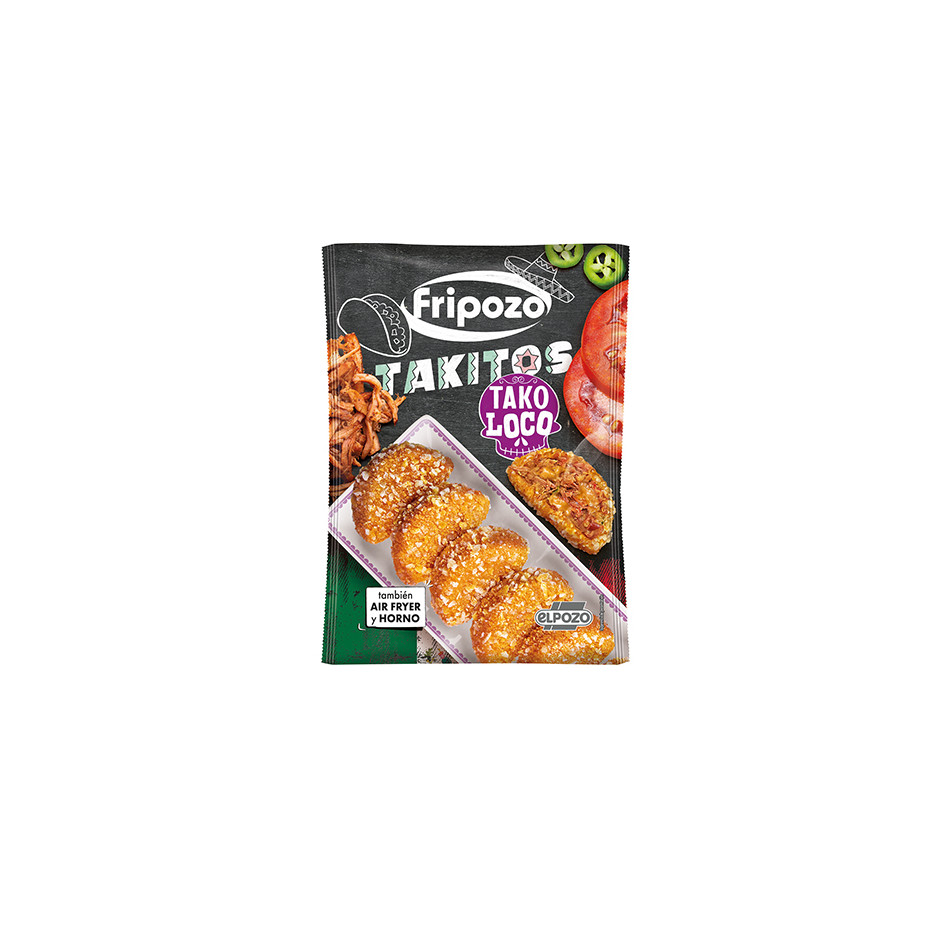 Relleno (53%) [preparado lácteo a base de queso (24%) (queso (leche) Cheddar (40%), grasa de palma, almidón modificado, sólidos lácteos (leche) (lactosuero (leche), leche en polvo desnatada), sales de fundido (E-452, E-331, E-330), sal, colorante (160a)), carne de cerdo cocida con salsa (21%) (paleta de cerdo, salsa (tomate, azúcar, vinagre de alcohol, melaza, almidón modificado, sal, colorante (E-150d), estabilizante (E-415), aromas naturales, sal, especias), agua, tomate (2.5%), cebolla frita (cebolla, aceite de girasol), chile jalapeño (1.1%), sal, extracto de levadura, aceite de girasol, especias, plantas aromáticas, asado, aroma, cebolla, zanahoria, corrector de acidez (E-260)], recubrimiento (47%) [pan rallado (harina de trigo (gluten), agua, sal, levadura, colorante (E-160e), aroma natural), tortilla de maíz (7.5%) (maíz, aceite de girasol), aceite de girasol, agua, harina de trigo (gluten), harina arroz].