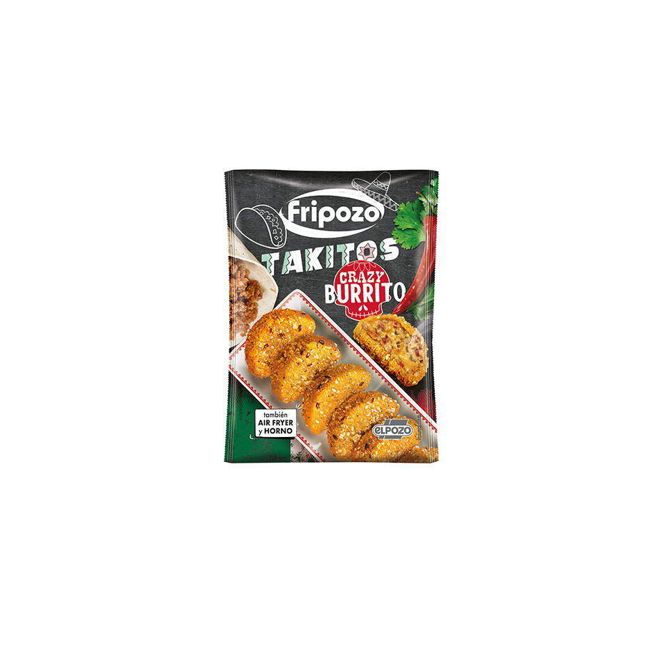 Relleno (53%) [fiambre de carne de vacuno y cerdo cocido (19%) (carne de vacuno, carne de cerdo, agua, almidón, sal, proteína de guisante, emulgente (E-451), dextrosa, especias, aromas, potenciador del sabor (E-621), gelificantes (E-407, E-508), antioxidantes (E-301), colorante (E-150d), aroma de humo, pimienta negra, corrector de acidez (E-325)], preparado lácteo a base de queso (19%) [queso (leche) Cheddar (40%), grasa de palma, almidón modificado, sólidos lácteos (leche) (lactosuero (leche), leche en polvo desnatada), sales de fundido (E-452, E-331, E-330), sal, colorante (E-160a)], agua, tomate, chile rojo (1.4%), cebolla frita (cebolla, aceite de girasol), almidón modificado, especias, plantas aromáticas, ajo asado, sal, extracto de levadura, aceite de girasol, aroma, cebolla, zanahoria, recubrimientoi (47%) [pan rallado (harina de trigo (gluten), agua, sal, levadura, colorante (E-160e), aroma natural), tortilla de maíz (7.5%) (maíz, aceite de girasol), aceite de girasol, agua, harina de trigo (gluten), semillas de sésamo, semillas de lino, semillas de chía (Salvia hispánica)]. ALÉRGENOS: PUEDE CONTENER: TRAZAS DE HUEVO, MOSTAZA, SULFITOS, SOJA, CACAHUETES.